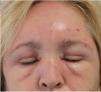 Physical examinationUpon examination, the patient exhibited a necrotic eschar covered by a honey-colored crust at the tick bite site (fig. 2), with no perilesional erythema. The patient also exhibited an ill-defined erythematous and edematous plaque extending from the tick bite site towards the lip region, covering the entire forehead and periorbital region (fig. 3). The patient also exhibited very painful, palpable, bilateral, and cervical lymphadenopathies of anteroposterior location.