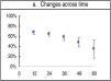 The appearance of changes on the dermatoscopy decreased over time (12 months vs 60 months) (67% vs 34%) (fig. 1).