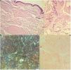 Case #2: A 69-year-old man with hypertension presented with a 1-year history lesion on the left forearm. Physical examination revealed the presence of a lobulated, elastic plaque about 4cm2 in diameter with a blister on its surface (Fig. 2). Ultrasound showed a well-demarcated, hypoechoic, heterogeneous oval nodule involving the dermis and subcutaneous tissue. Histological study with HE revealed a deposit of amorphous eosinophilic material distributed across the dermis, subcutaneous tissue, and perivascularly, associated with a plasma cell infiltrate. The material was Congo red-positive and showed green birefringence under polarized light (Fig. 3). Systemic involvement was excluded. The only observed analytical change was elevated levels of kappa and lambda light chains (4.71mg/dL2 and 3.34mg/dL2, respectively). Diagnosis was PCNA, which was treated with surgical excision. The lesion did not recur, and the patient did not any develop systemic amyloidosis at the 5-year follow-up