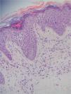 Ante la evidente progresión cutánea de la enfermedad, iniciamos un tratamiento con bexaroteno oral (TARGRETIN®) a principios del año 2003. Su tolerancia fue buena, y la respuesta clínica fue espectacular, presentando únicamente lesiones hipopigmentadas residuales, no infiltradas, que han permanecido estables, por lo cual, consideramos que la paciente se encuentra en remisión completa hasta el momento actual con 42 meses de seguimiento (fig. 6).