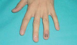 Fig. 2.--Recuperación completa de la morfología ungueal 4 meses después de suspender el tratamiento.