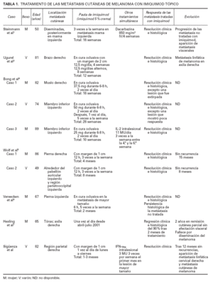 TABLA 1. TRATAMIENTO DE LAS METÁSTASIS CUTÁNEAS DE MELANOMA CON IMIQUIMOD TÓPICO