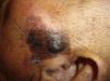 Varón de 93 años con una mancha pigmentada, en una parte de la cual, se apreciaba una lesión nodular firme de 1,5cm, localizada en la región preauricular izquierda (fig. 1). Tras observarse un aumento de tamaño, se realizó la exéresis completa de la lesión con la sospecha clínica de melanoma sobre léntigo maligno. El estudio histopatológico mostró una epidermis focalmente atrófica y no ulcerada, y una densa proliferación de células fusiformes isomorfas, con variable pleomorfismo, que ocupaba todo el espesor dérmico e infiltraba el tejido adiposo subcutáneo (fig. 2). Las células fusiformes mostraban zonas de aspecto histiocitario/xantomatoso, con abundante pigmento melánico y mitosis aisladas (fig. 3A). Inmunohistoquímicamente, las células tumorales mostraron positividad difusa para vimentina, y focal para CD34 y CD68, así como negatividad para otros marcadores como panCK, actina, desmina, S100, MelanA y HMB-45. Se observó tinción positiva en células dispersas para S100 que correspondía al componente de células dendríticas (fig. 3B). Finalmente, se emitió el diagnóstico de DFSP variante pigmentada (tumor de Bednar).