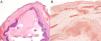 Una mujer de 61 años de edad intervenida de un fibroadenoma de mama, sin otros antecedentes médicos de interés, consultó por una lesión discretamente dolorosa, de rápido crecimiento en la región frontoparietal derecha pegada a la línea de implantación capilar. La lesión tenía un mes de evolución y había aparecido pocos días después de un traumatismo sobre la zona. En la exploración física presentaba una lesión exofítica de 15mm de diámetro, bien delimitada, de tonalidad roja y violácea, con parches blanco-amarillentos y blanda al tacto (fig. 1). La imagen dermatoscópica mostraba una lesión con áreas rojizas homogéneas, estructuras blanco amarillentas irregulares, zonas de velo azul blanquecino, vasos lineales irregulares y algunas crisálidas (fig. 2). En la ecografía cutánea se observó una lesión hipoecoica lobulada localizada en la dermis superficial, con discreto refuerzo posterior y aumento de la vascularización perilesional (fig. 3). Se realizó extirpación completa de la lesión bajo anestesia local para análisis histopatológico, que confirmó el diagnóstico de sospecha de pilomatrixoma anetodérmico (fig. 4).