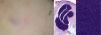 En la exploración física se observó una zona levemente azulada, mal definida, en el hemitórax izquierdo anterior a la línea axilar media. Se palpaba con dificultad un pequeño nódulo blando, móvil y doloroso al tacto. La dermatoscopia mostró una zona azul-violácea central, rodeada de un halo eritematoso (fig. 1a).