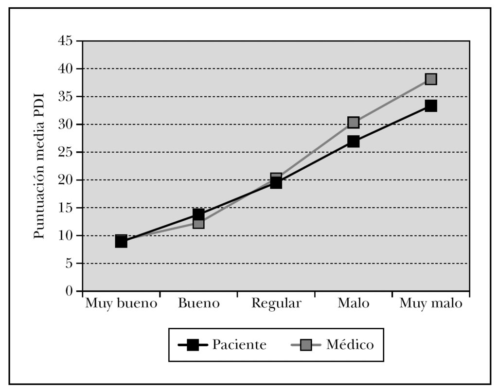 Los resultados del presente estudio indican que la versión española del PDI es válida y sensible, con propiedades psicométricas muy similares a la versión original en inglés. Además, sugiere que los resultados obtenidos utilizando las dos versiones pueden ser comparados y agregados 18. La versión española del cuestionario muestra una buena sensibilidad a los cambios, al igual que la versión original. Aunque esta característica se ha demostrado muy recientemente en la versión original y con una muestra escasa de pacientes 19.