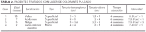En nuestros casos hemos observado lo destacado previamente por otros autores, lo que nos permite sugerir que el láser de colorante pulsado es un tratamiento que debería ser considerado, sobre todo, cuando la ulceración del hemangioma provoque en el niño complicaciones como las referidas al comienzo de esta discusión.