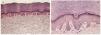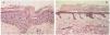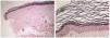 Las distintas variedades, normales y anormales, que se pueden encontrar a nivel de la capa córnea se resumen en las tablas 1 y 2. La capa córnea normal de tipo laxo es siempre más delgada que la de tipo compacto (figs. 1, 3 y 4). Ello guarda relación con el espesor de las demás capas de la epidermis; la epidermis viva de palmas y plantas es claramente más gruesa que la del resto de la piel (con la excepción de los genitales...). Este mayor grosor es debido al mayor número de capas de células espinosas y granulosas (la capa basal, por definición, consta siempre de una sola capa de células: las que contactan con la membrana basal). La córnea laxa es siempre basófila.