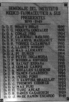 FIG. 2.--Placa de mármol realizada como homenaje a los presidentes del Instituto Médico-Farmacéutico de Barcelona.